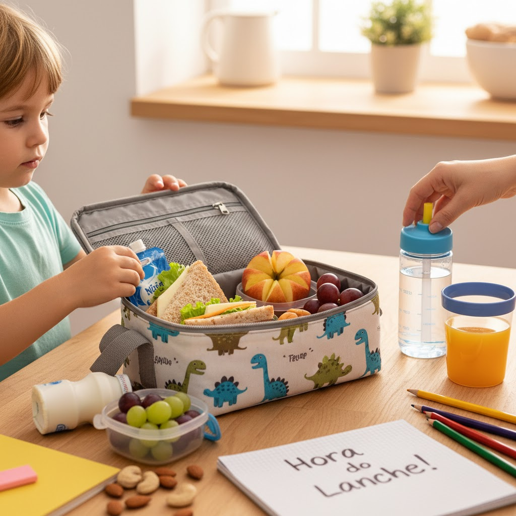 Transformando o lanche em aprendizado Envolver a criança no processo de montagem da lancheira é uma excelente estratégia educativa. Ao permitir que ela ajude a escolher ou embalar o lanche, você estimula a autonomia e cria uma consciência sobre o que ela está comendo. É um momento de conexão familiar que ensina sobre escolhas saudáveis.